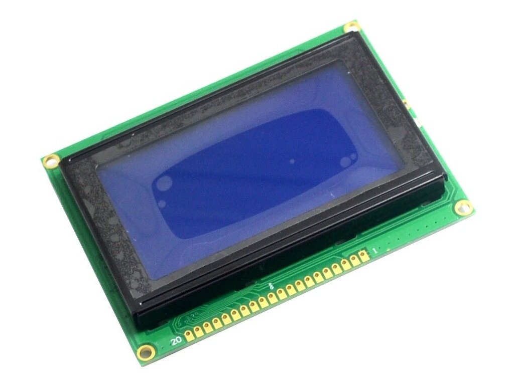 It is an LCD display - 128x64 dots , blue backlit, white letters. Uses KS0108 controller.
