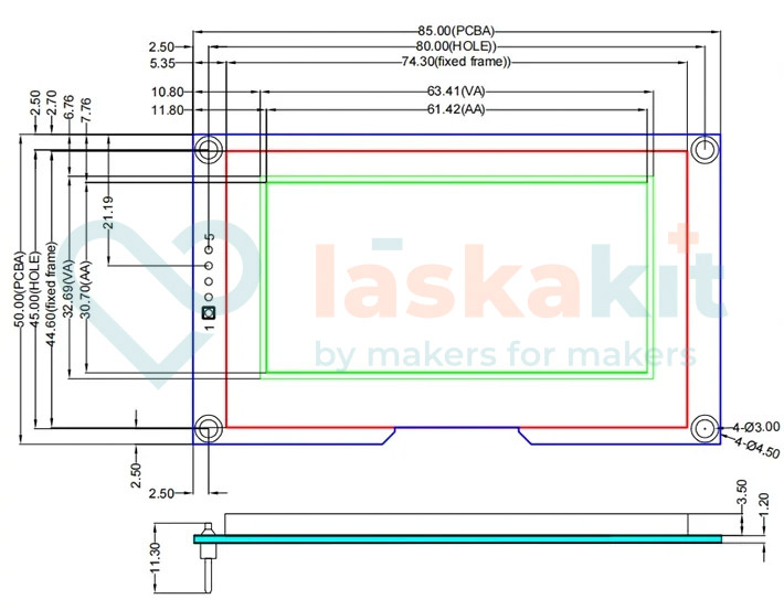 OLED (Organic Light-Emitting Diode), also known as organic electric laser display or organic light emitting semiconductor (Organic Electroluminescence Display, OLED), is a modern display technology with self-emission of light without the need for backlighting. This 2.7" display offers a high resolution of 256×128 pixels, excellent contrast, fast response, wide viewing angle and low power consumption. It is suitable for projects where a detailed and clear image is required, even in extreme temperature conditions.