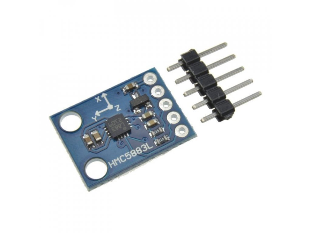Compass and three-axis magnetometer with HMC5883L sensor for microcontrollers. The sensor communicates over the I2C bus and allows to measure the magnetic field strength in three axes.