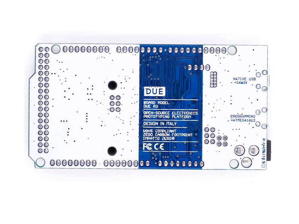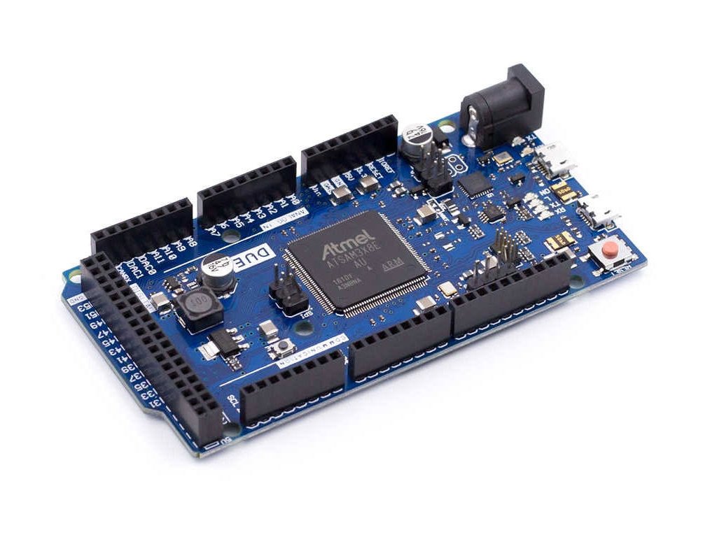 Arduino Due is a board based on the Atmel ATSAM3X8EA ARM Cortex-M3 processor. It is the first Arduino board based on a 32-bit ARM core. It has 54 digital input/output pins (12 of which can be used as PWM outputs), 12 analog inputs, 4 UART (hardware serial ports), 84 MHz, USB OTG , 2 DAC (digital analog) 2 TWI, power connector, SPI, JTAG, reset button and erase button.