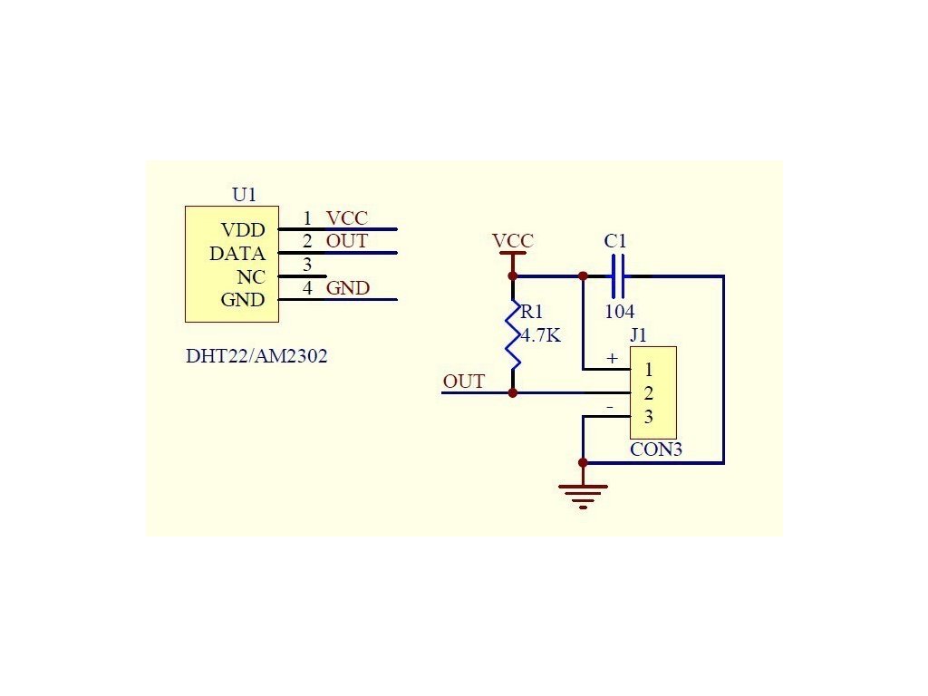 The DHT22 thermometer and hygrometer is an easy-to-use module that contains everything you need in its housing. So you only need to connect it with three wires. The module already has a pullup resistor and capacitor in it, just connect it to Arduino.