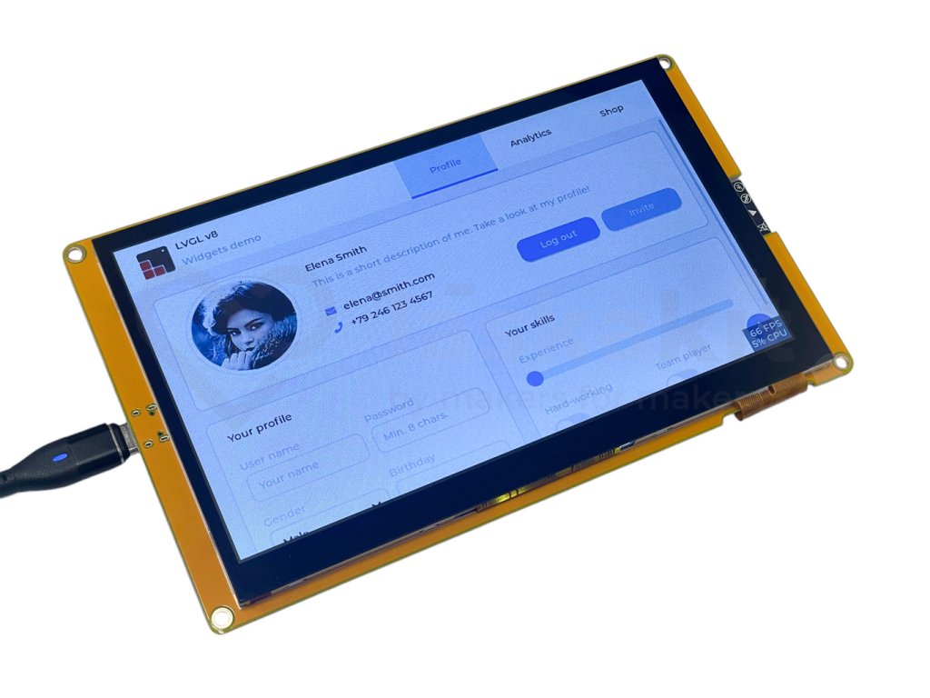 ESP32-S3 HMI 7" 800x480 Smart Display Screen is a 7-inch diagonal smart display with 800x480 pixel resolution based on the ESP32-S3 processor, offering high performance and versatility for IoT, HMI (Human-Machine Interface) or industrial automation projects. This display combines the power of the ESP32-S3 with the capabilities of a high quality display to create interactive interfaces with fast response times.