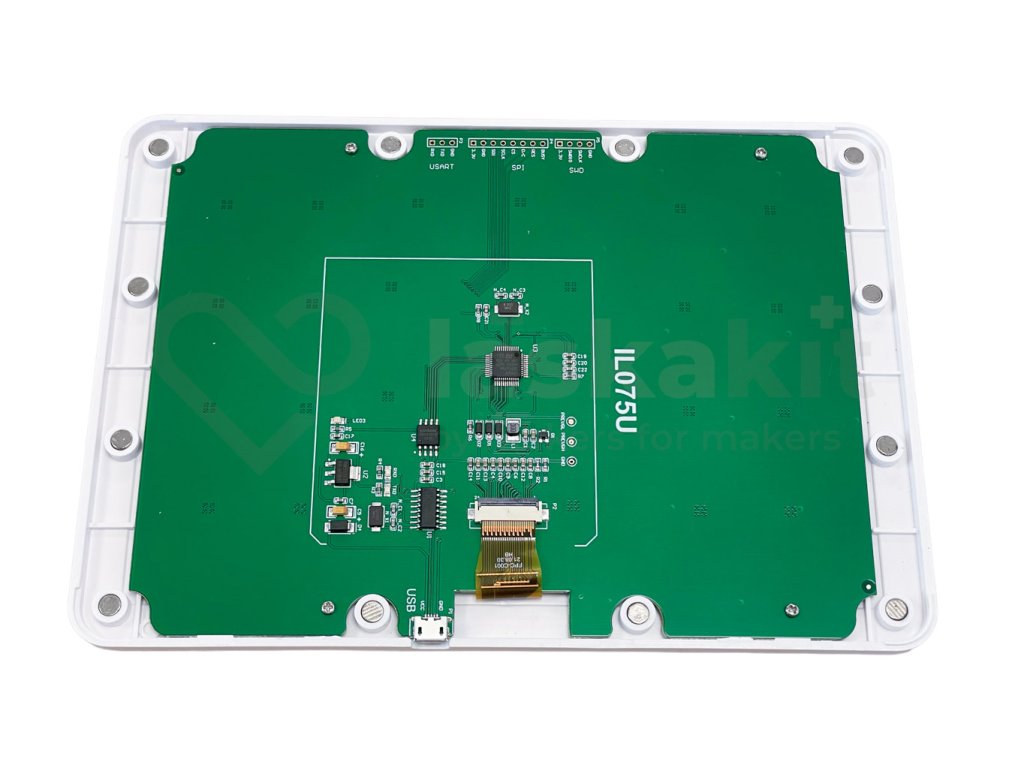 Electronic paper display 7.5 inches with 800x480 resolution, USB interface and the ability to display black and white images, logos, icons. The image you display will last indefinitely without power - display the image and then turn off the power. Once these electronic paper display modules are updated, they do not require any power and can actually be completely disconnected, with the content remaining on the display for an unlimited time. This ePaper display is ideal for devices with low energy consumption powered by solar sources or batteries.