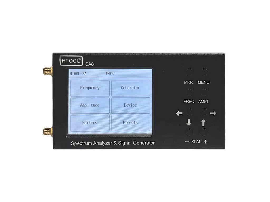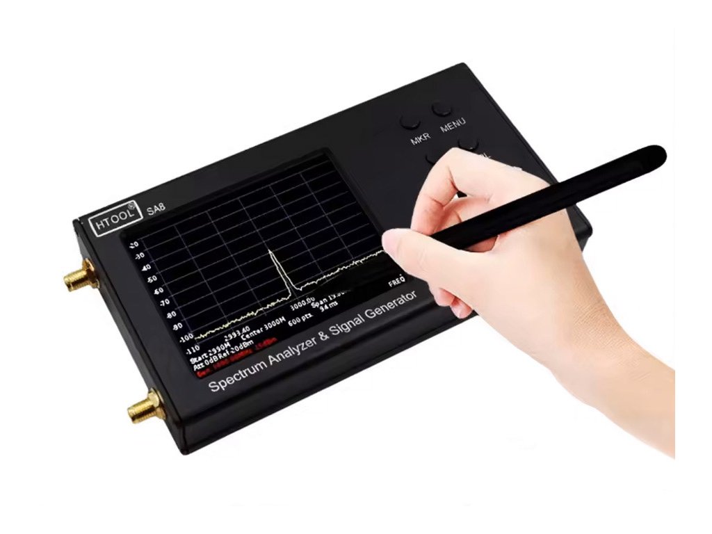 The HTOOL SA8 is a portable and versatile spectrum analyzer combined with a signal generator. It allows for quick analysis of the RF environment over a wide frequency range and can simultaneously generate signals for testing, tuning, and diagnostics.
