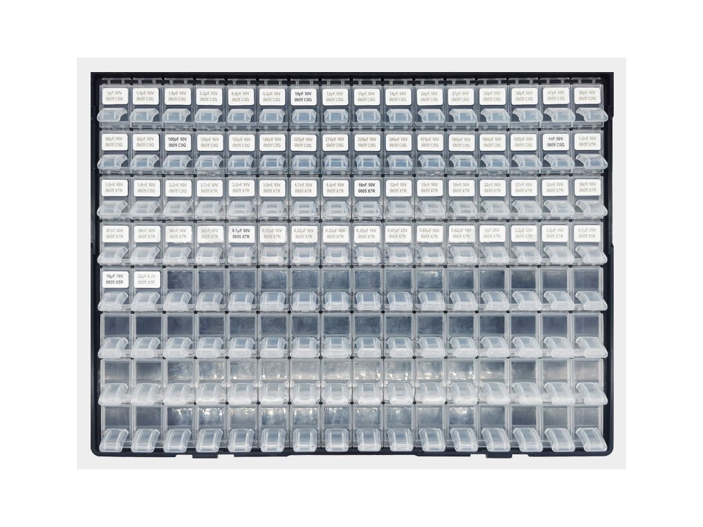 Mega capacitor set from Murata, type 0805 1%. In practical packaging, clearly arranged.