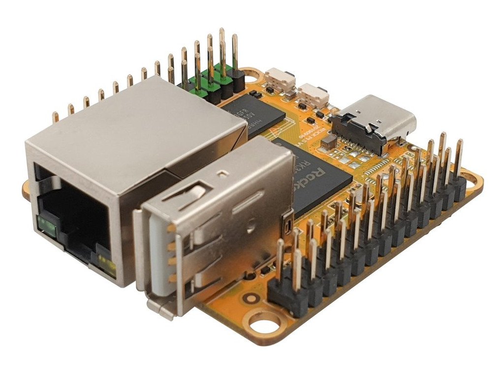 Even smaller than the small one - that's the Rock Pi S. Supercharged RK3308 processor on a 43x43 mm board. The RK3308 processor contains four cores with a frequency of up to 1.3 GHz. On such a small board of a single board computer, you will also find an Ethernet connector (100 Mbps) and a USB-A connector (USB 2.0).