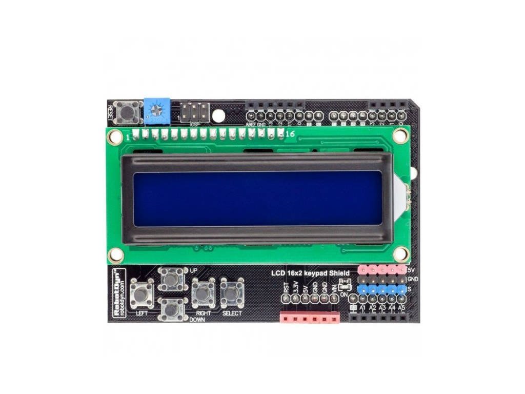 You just put on Arduino Mega, UNO or Leonardo. It also contains 5x button, available on A0 pin. This is a basic lcd display - 16 characters and 2 lines, blue backlit, white letters. It uses the extremely simple HD44780 parallel interface controller. Blue backlit with white letters.