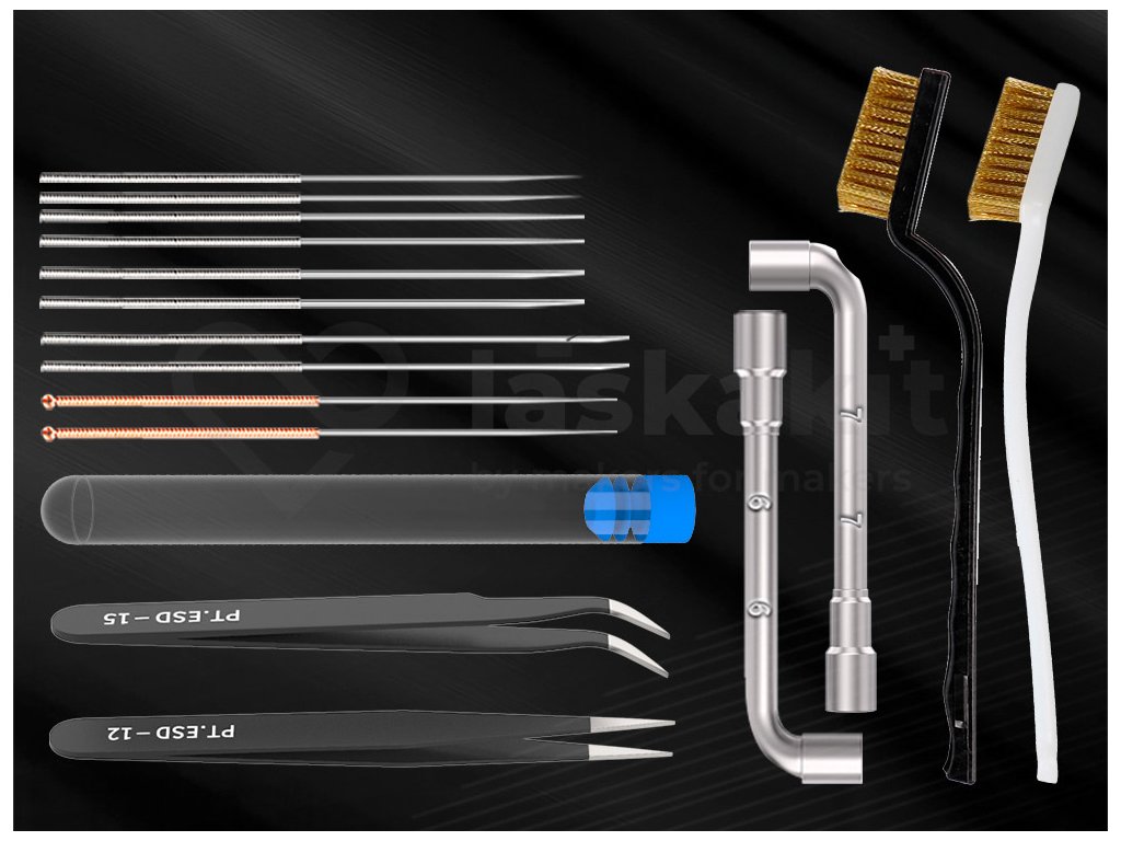 This useful kit contains everything you need to replace and maintain your 3D printer nozzles.