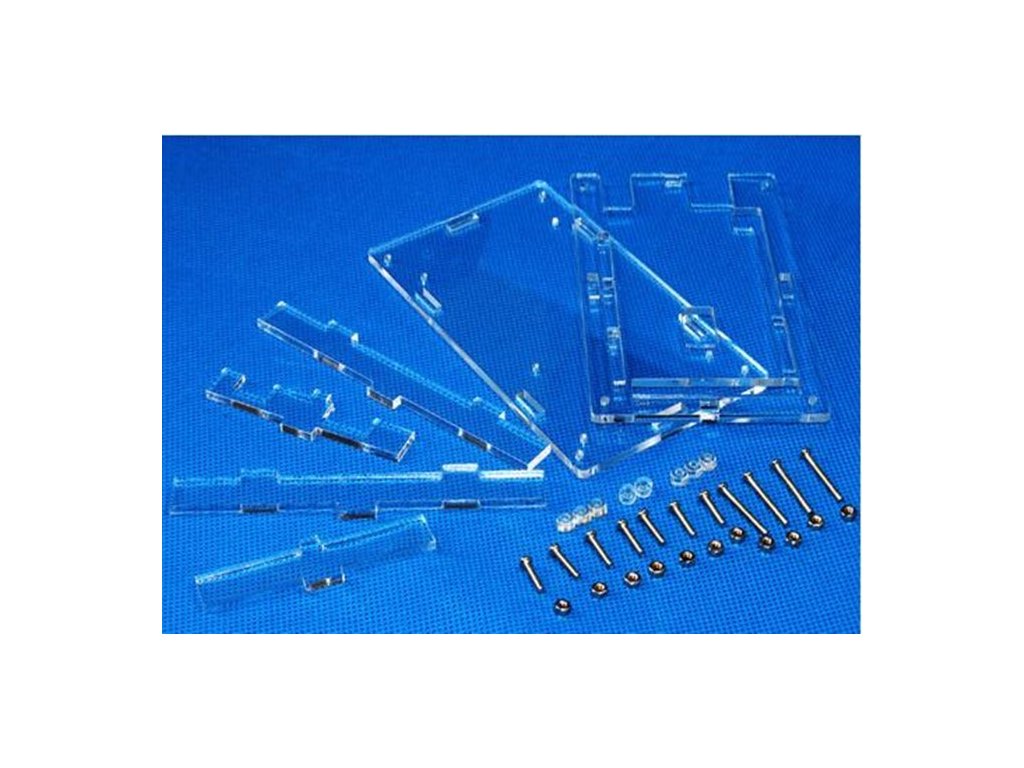 A beautiful and stylish box, designed just for the Arduino Mega, delivered in a disassembled state. So you don't have to worry about damage during transport. A covering film is glued on the individual parts to prevent scratching the surface of the box. The box has space for connecting the contacts from above to the single pins on the board.