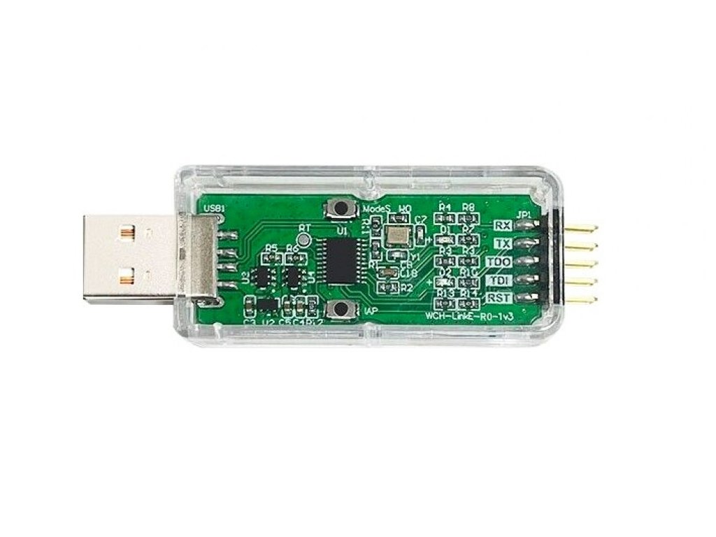 The WCH-LinkE-RO-1v3 USB programmer and debug adapter is a compact tool designed for programming and debugging WCH microcontrollers (such as the CH32, CH57, CH58, CH32V families, etc.).