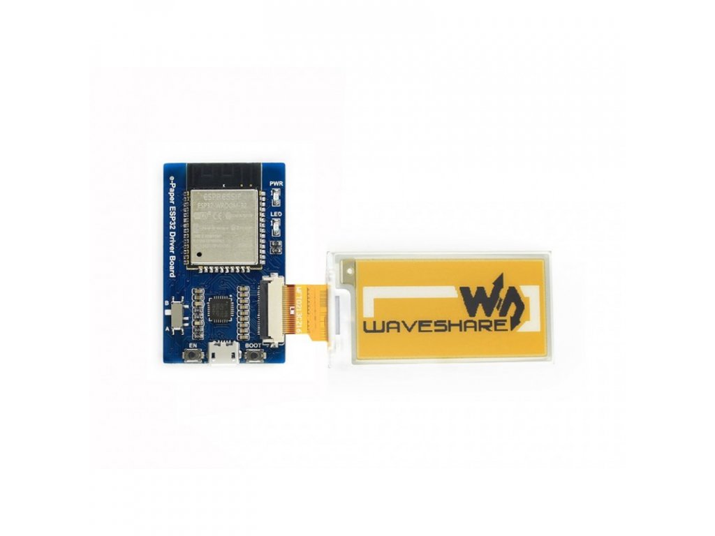 The E-Paper Driver Board is based on the esp32 chip from Expressif. It combines the functions of a WIFI access point and station + microcontroller and uses a simple programming language. The board is compatible with Arduino IDE and NodeMCU.