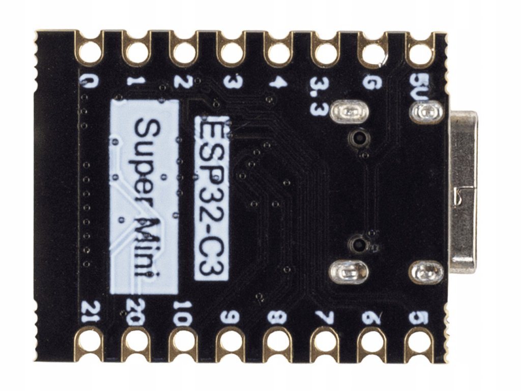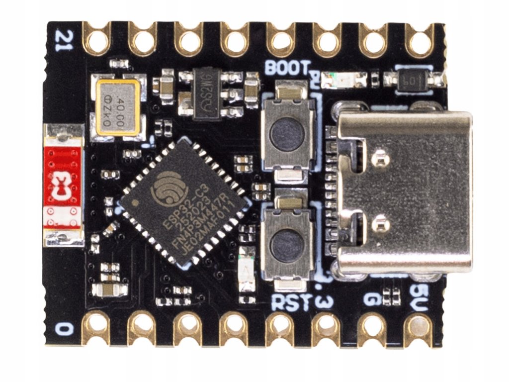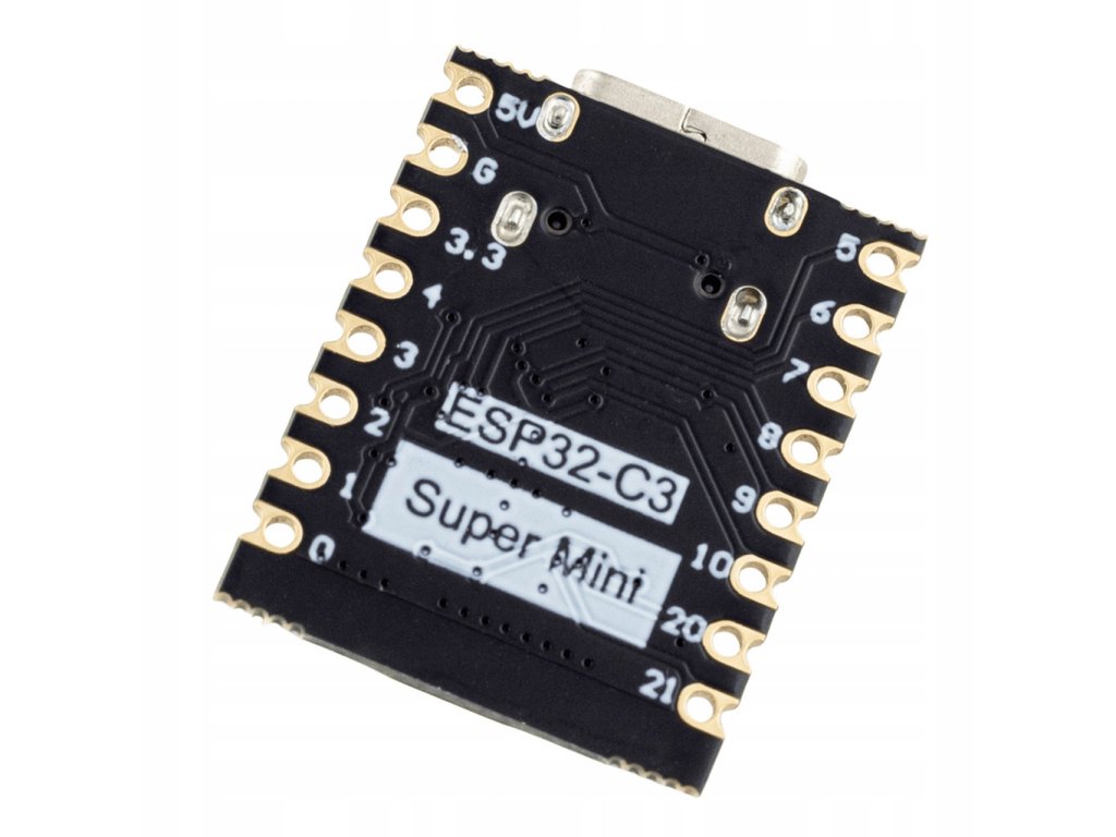 ESP32-C3 Super Mini je kompaktní vývojová deska postavená na čipu ESP32-C3, která kombinuje výkonné bezdrátové funkce Wi-Fi i Bluetooth Low Energy 5.0 s nízkou spotřebou energie. Díky malým rozměrům a bohaté podpoře v Arduino i ESP-IDF ekosystému je ideální pro IoT zařízení, bezdrátové senzory, automatizaci a inteligentní domácnosti. Modul je vybaven USB-C konektorem a umožňuje snadné napájení a programování.