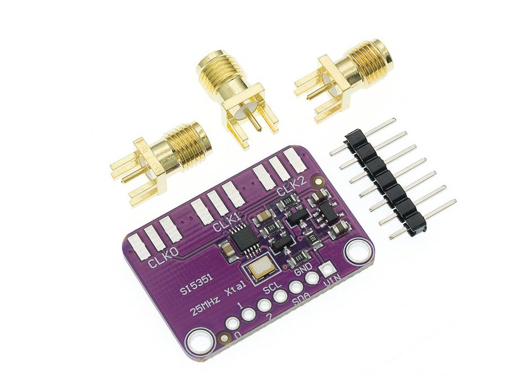 Nastavením PLL a děličů můžeš vytvářet přesné a libovolné frekvence. K dispozici jsou tři nezávislé výstupy a každý z nich může mít jinou frekvenci. Výstupy jsou 3Vpp, buď prostřednictvím konektoru pro nepájivé pole nebo volitelného konektoru SMA pro RF činnosti.
