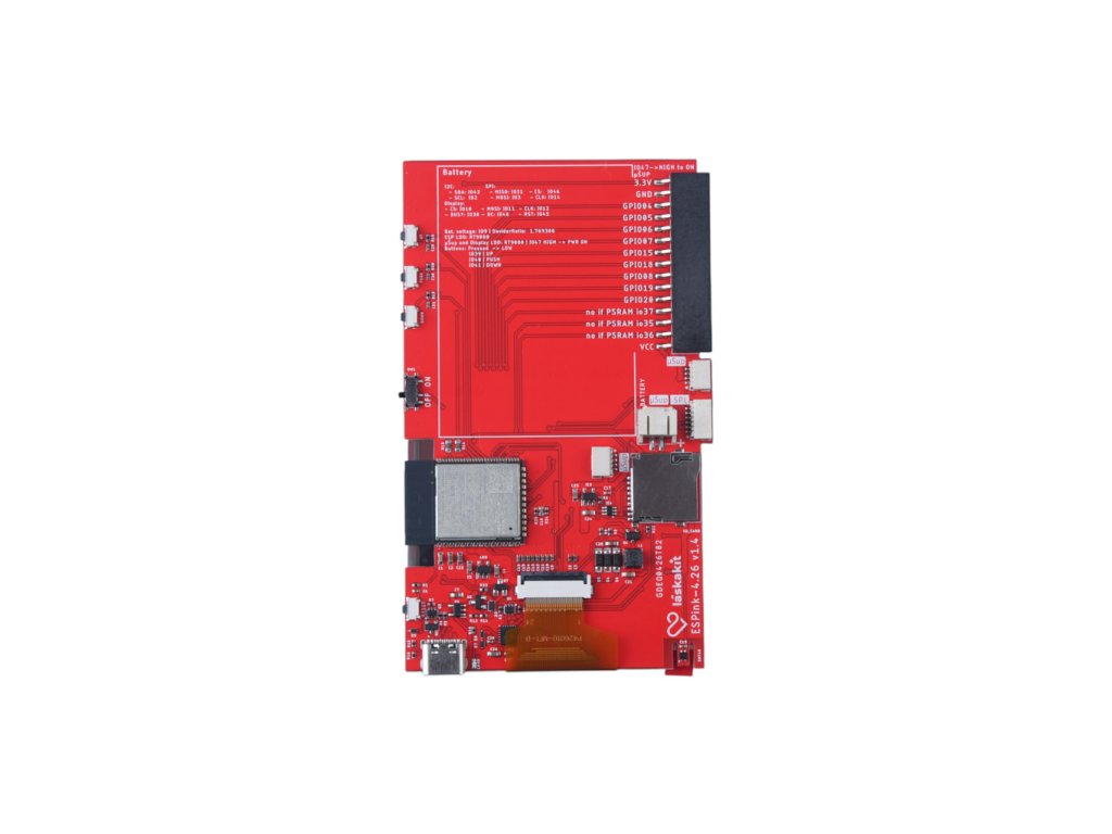 Na našem github máš schéma desky a nezapomněli jsme ani na vzorové kódy, které by ti značně měly usnadnit programování a práci s naším ESPink-4.26.