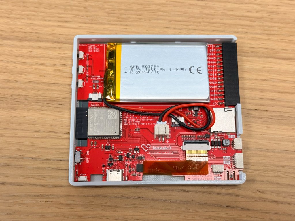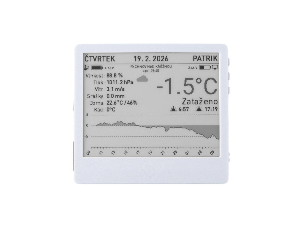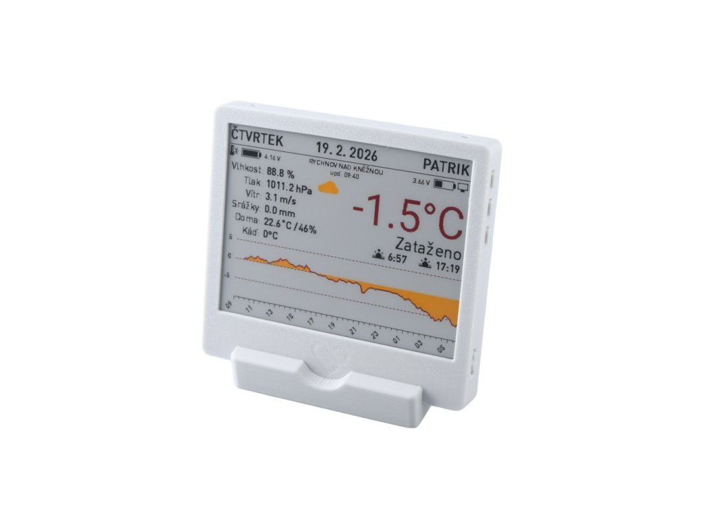 Stavba je jednoduchá a můžeme ji doporučit i pro začátečníky. Není potřeba nic pájet. e-Paper opatrně připojíš přes adaptér a stíněný kabel do vývojové desky, vše přesuneš do rámečku, který si buď vytiskneš na 3D tiskárně, nebo si ho od nás také můžeš přiobjednat , zašroubuješ, připojíš baterii, flashneš firmware, připojíš na Wi-Fi a fungujete. Následně už si můžeš do ePaperu posílat přes službu obsah, který na něm chceš mít zobrazený.