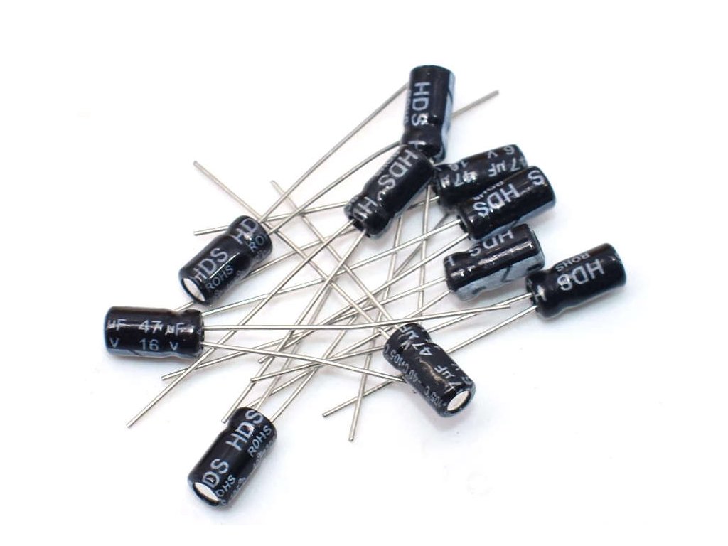 - 1ks LaskaKit sada 120ks elektrolytických kondenzátorů, 10 hodnot (1uF-1000uF)