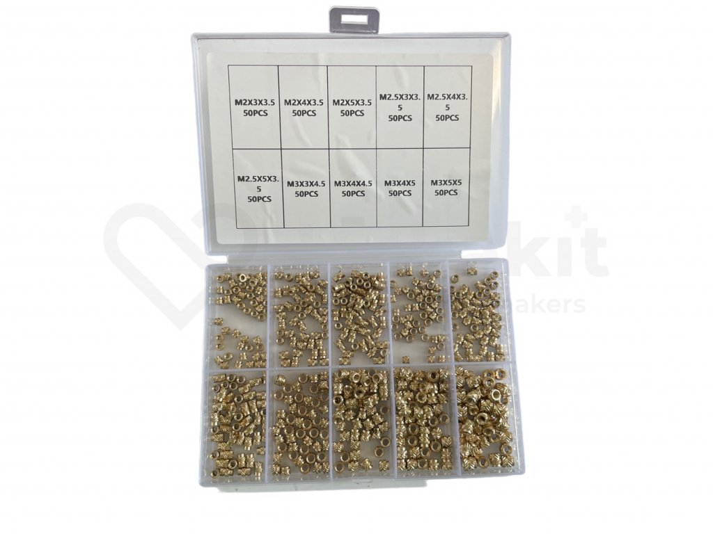 LaskaKit threaded inserts, set M2 M2.5 M3 500 pcs, brass