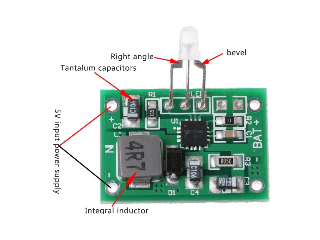 Tento modul používá regulátor nabíjení TP5000 Li-Ion IC