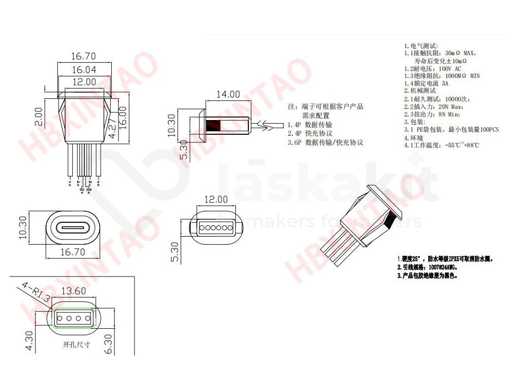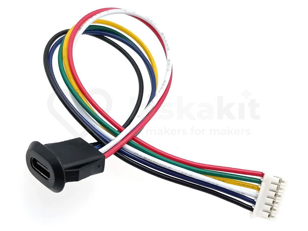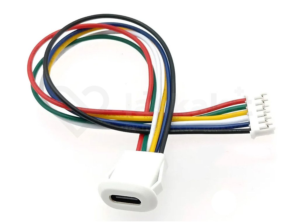 Power and data cable JQ-118 USB-C to JST-PH-6 2mm the 10 cm long connector is specifically designed to connect devices with a USB-C port and components using the 6-pin JST-PH connector with a 2 mm pitch