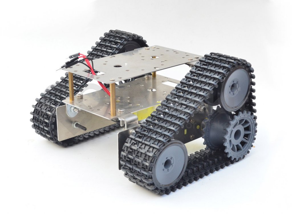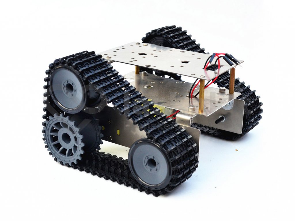 Stavebnice pásového podvozku dodávána v rozloženém stavu. Rám je vyroben z nerezu a kola se samostatně pohybují, takže se výborně pohybuje v nerovném terénu.