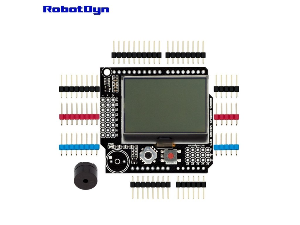 - 1ks RobotDyn grafický LCD displej 128x64 + joystick Shield