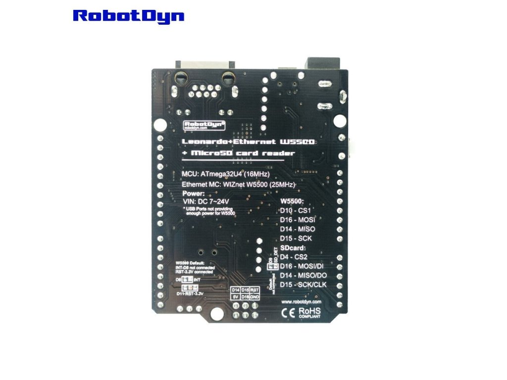- 1ks RobotDyn Leonardo Ethernet V2 W5500 PoE Micro SD, kompatibilní s Leonardo ETH
