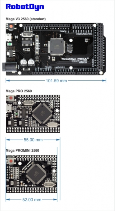 RobotDyn Mega 2560 PRO MINI, ATmega2560-16AU, 3.3V logic