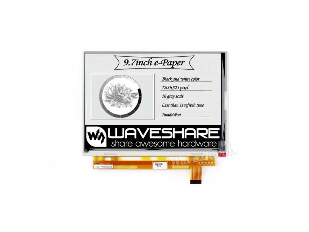 - 1ks Waveshare 9.7" 1200x825 ePaper raw displej Grayscale