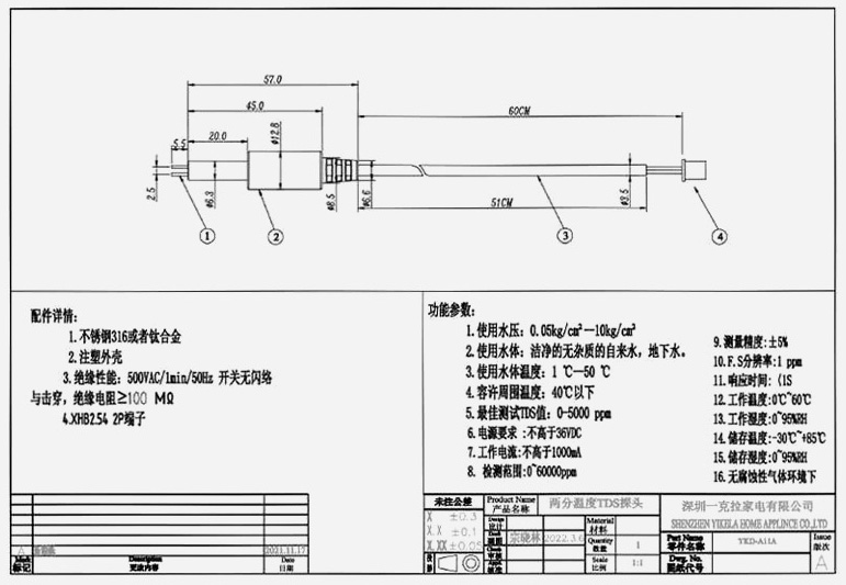 YKD-TDS-A11 Sonda pro měření vodivosti vody